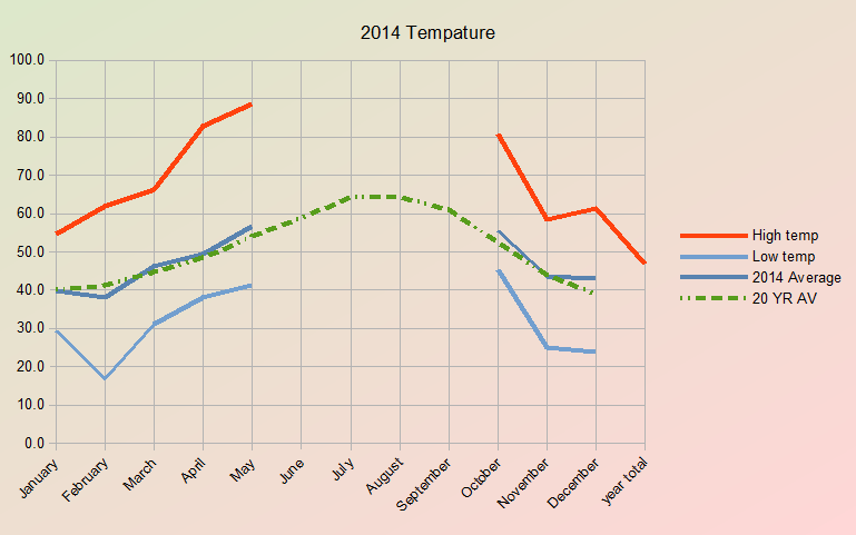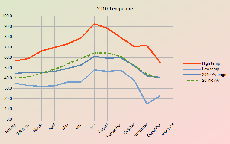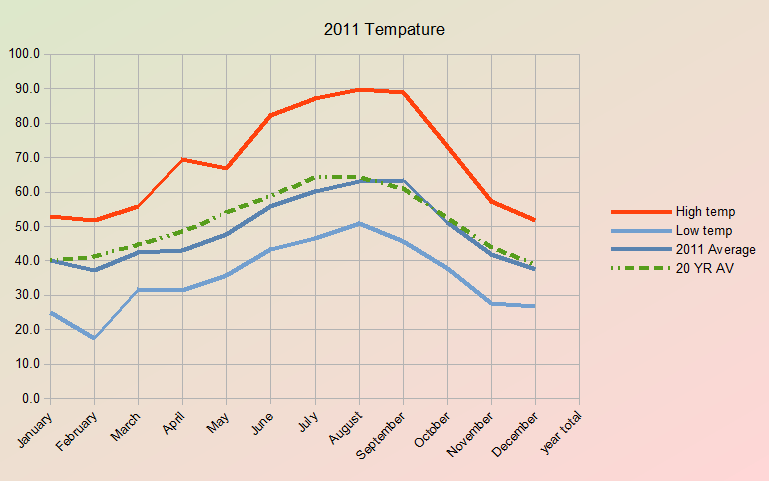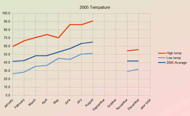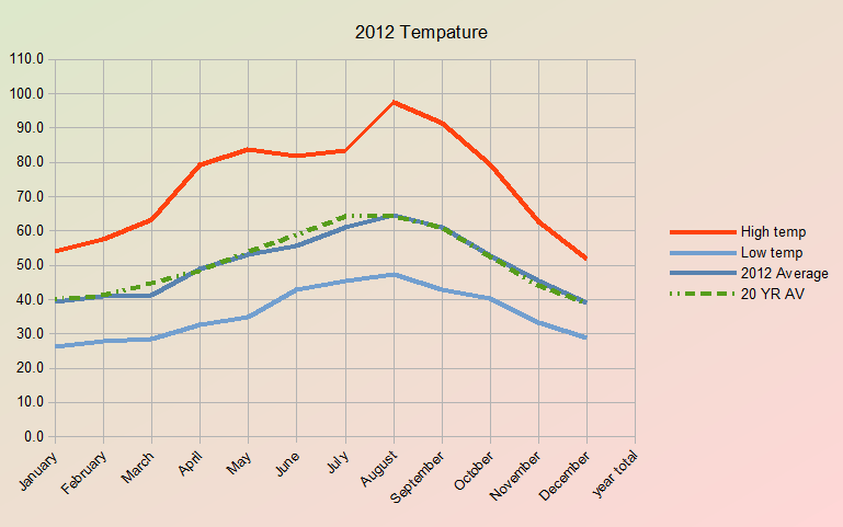 | year | month | High temp | Low temp | 2005 Average | 20 YR AV | ||||||||||||||||