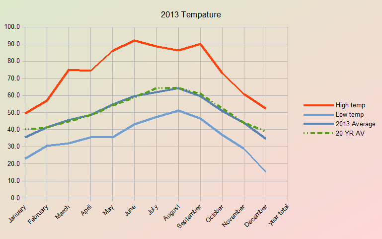 | 2013 | 35.5 | 41.3 | 45.6 | 48.6 | 54.7 | 59.5 | 62.0 | 64.1 | 59.6 | 51.0 | 43.8 | 34.7 | 2013 | ||||||||