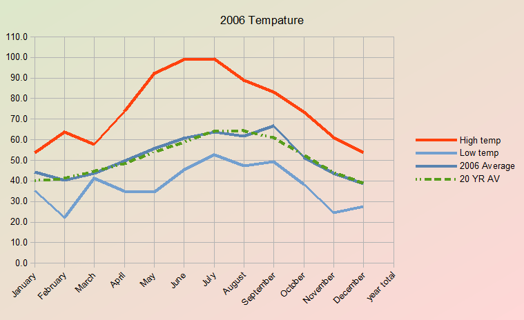 | year | month | High temp | Low temp | 2006 Average | 20 YR AV | ||||||||||||||||