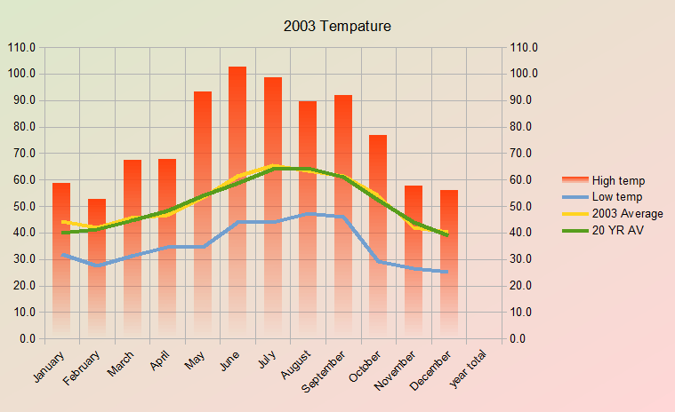 | year | month | High temp | Low temp | 2003 Average | 20 YR AV | ||||||||||||||||