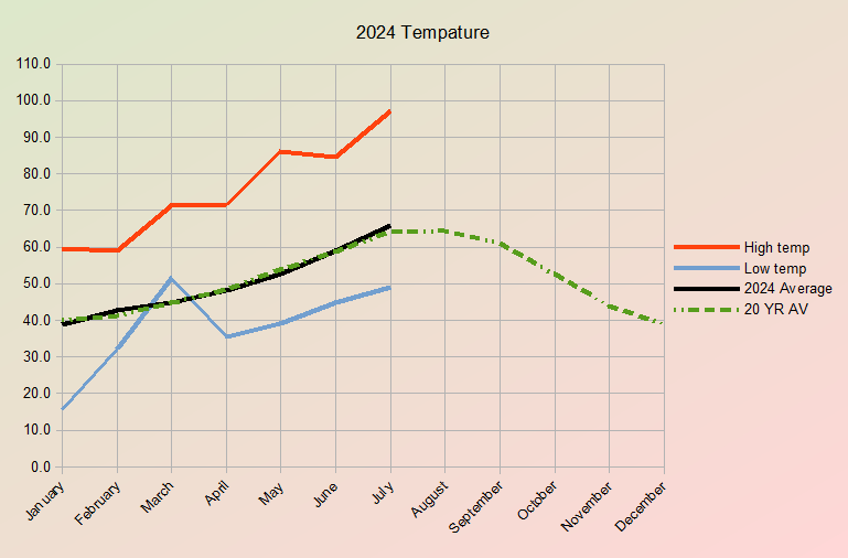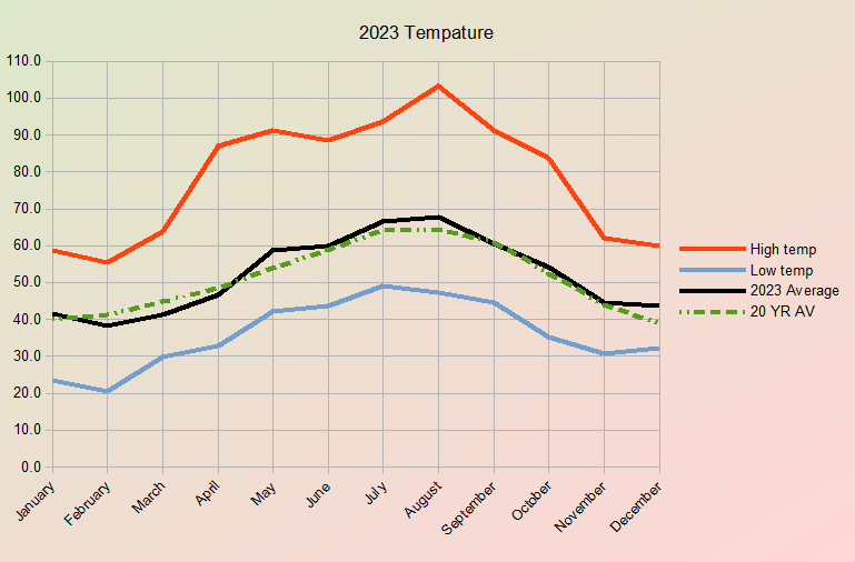 | year | month | High temp | Low temp | 2023 Average | 20 YR AV | year | month | High temp | Low temp | 2024 Average | 20 YR AV | ||||||||||