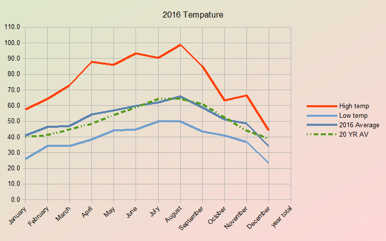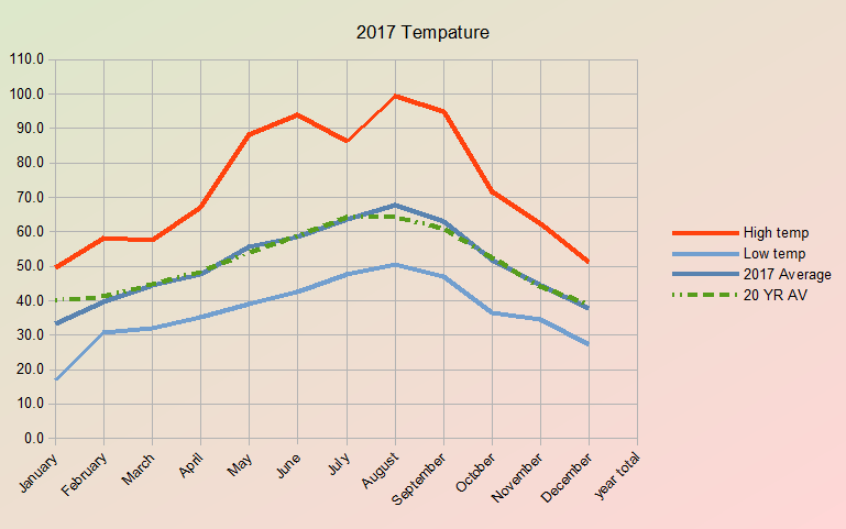 | year | month | High temp | Low temp | 2017 Average | 20 YR AV | ||||||||||||||||
