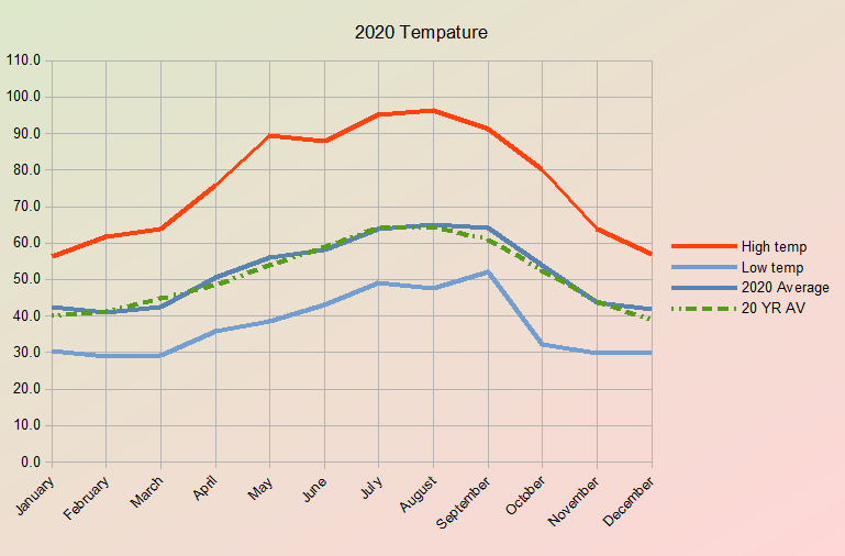| year | month | High temp | Low temp | 2020 Average | 20 YR AV | ||||||||||||||||