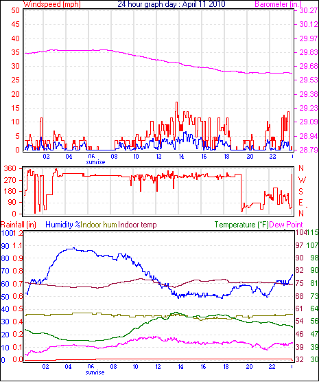 Maximum windspeed = 13.8 mph on day 29 at time 16:07