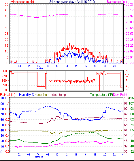 Maximum windspeed = 19.6 mph on day 04 at time 16:10