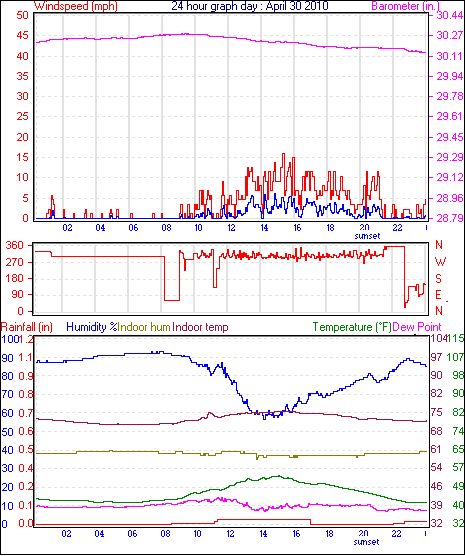 Maximum pressure = 30.279 in. on day 30 at time 23:30
