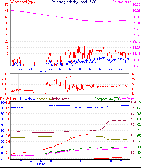 Maximum windspeed = 13.8 mph on day 04 at time 07:53