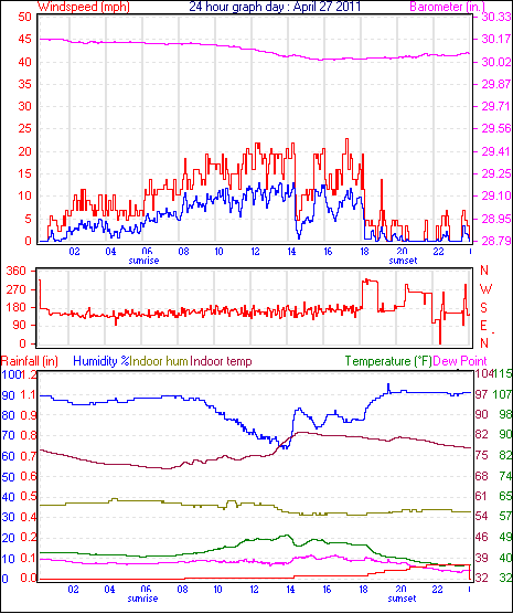 Maximum dewpoint = 39.5°F on day 30 at time 00:26