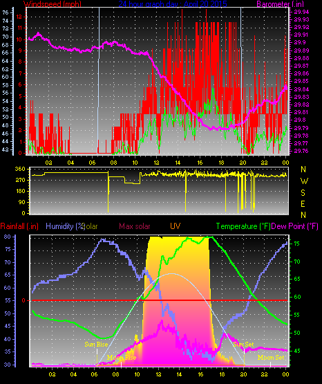Maximum windspeed = 8.1 mph on day 30 at time 17:49