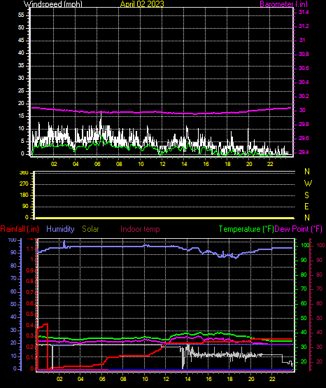Minimum dewpoint = 32.6°F on day 02 at time 22:03