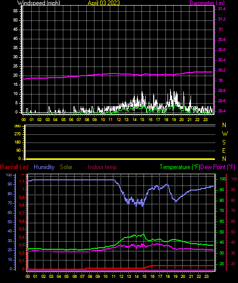 Minimum dewpoint = 32.2°F on day 03 at time 7:13