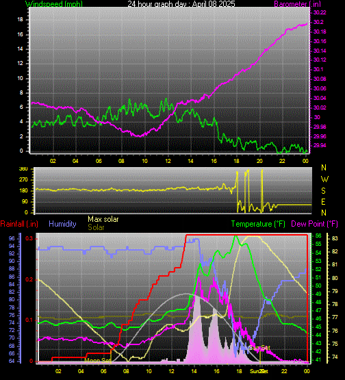 Maximum windspeed = 16.1 mph from 176°( S ) on day 08 at time 11:37