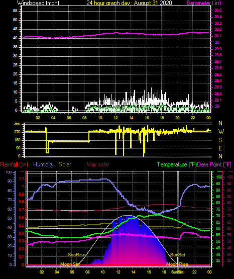 Minimum dewpoint = 46.0°F on day 30 at time 6:58