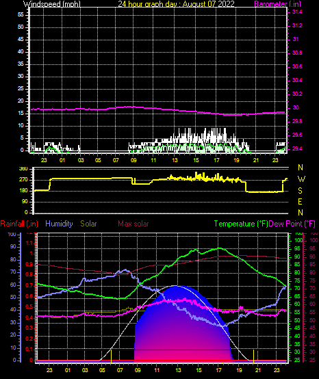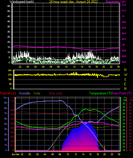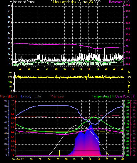 Maximum windspeed = 8.1 mph from 259°( W ) on day 23 at time 17:24