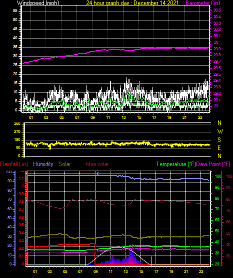 Maximum windspeed = 13.8 mph on day 04 at time 17:04