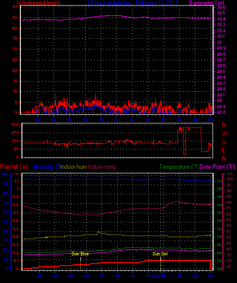 Minimum dewpoint = 42.4°F on day 28 at time 0:20