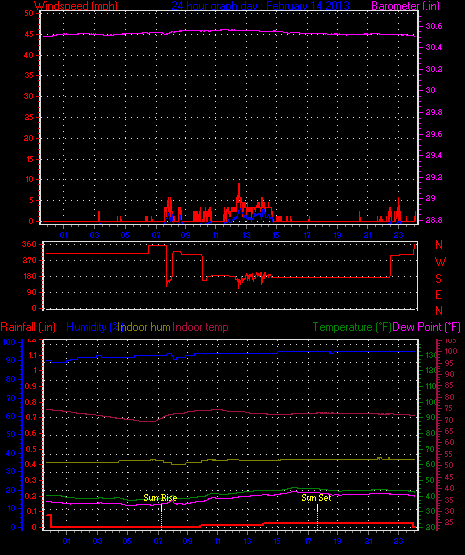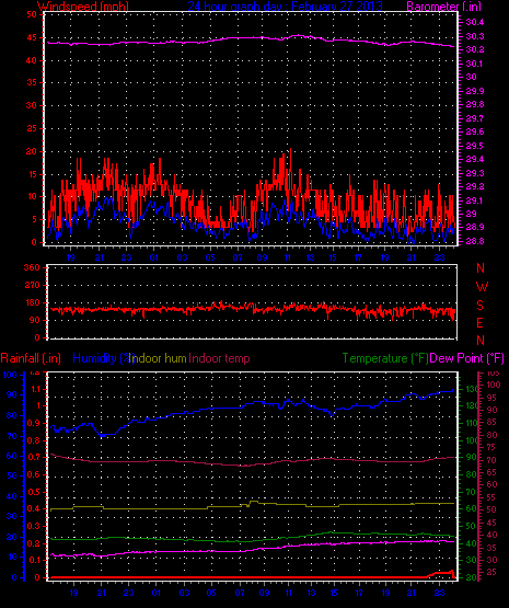 Minimum dewpoint = 32.3°F on day 26 at time 5:25