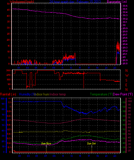 Maximum dewpoint = 43.9°F on day 02 at time 13:03