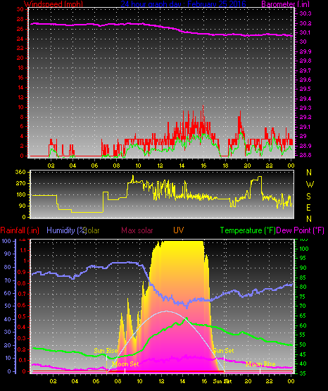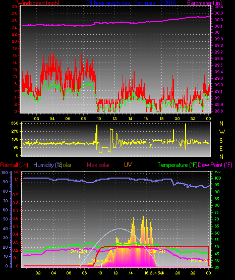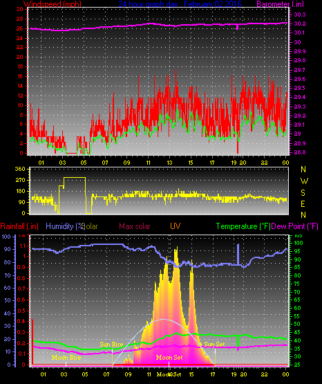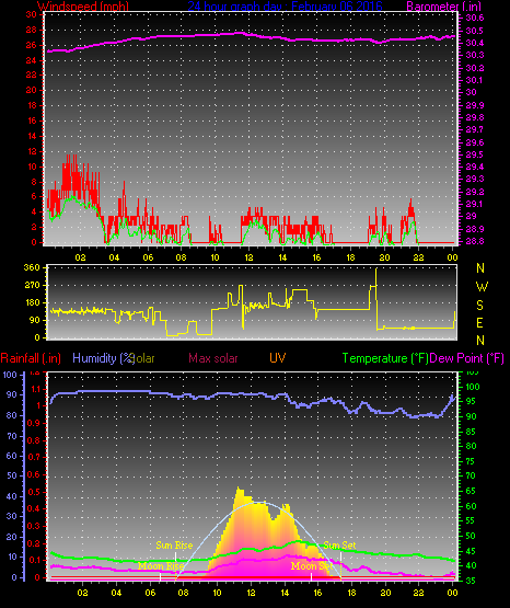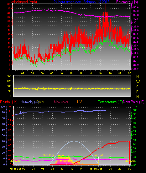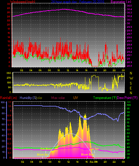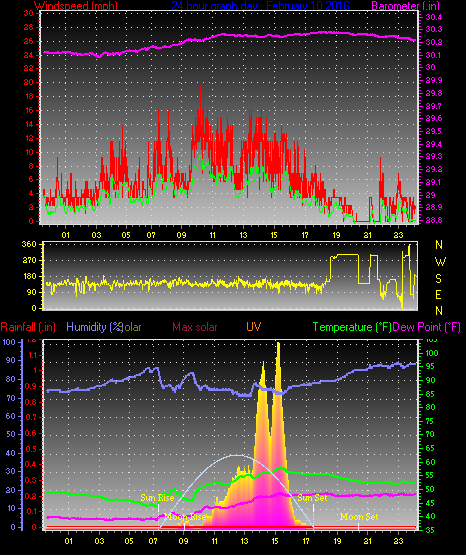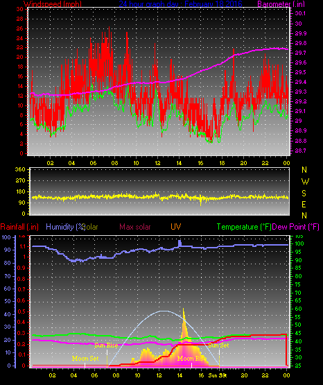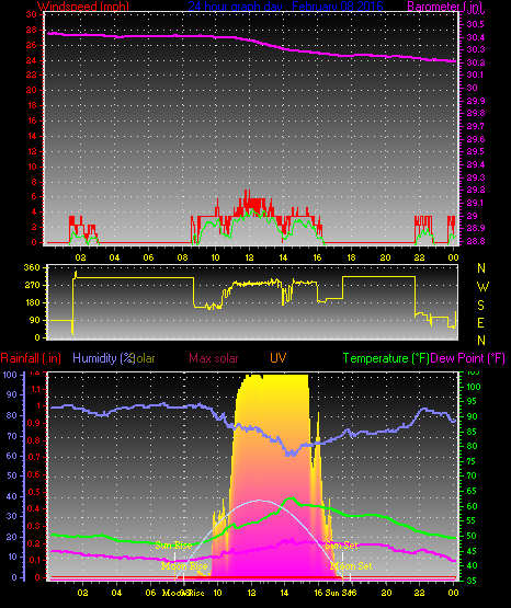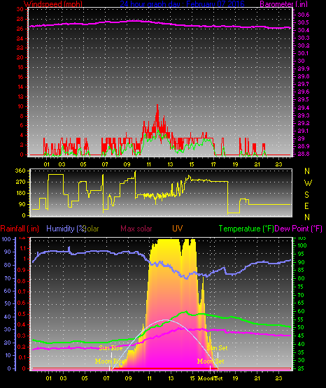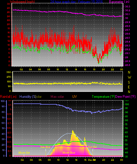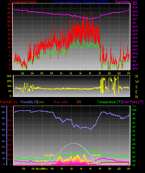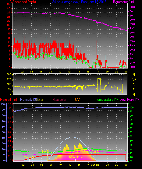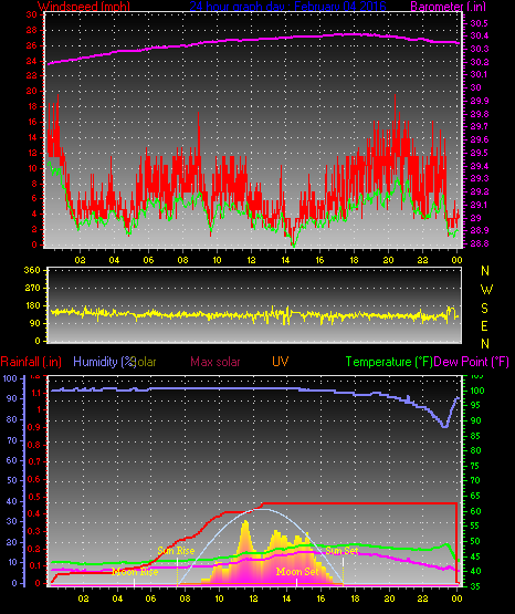Maximum windspeed = 15.0 mph on day 03 at time 00:06