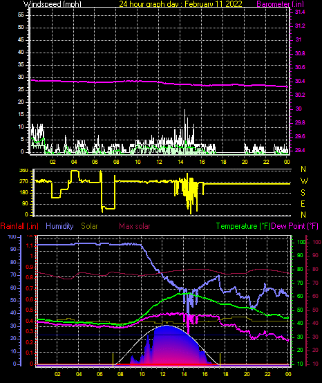 Maximum windspeed = 17.3 mph from 110°(ESE) on day 28 at time 18:01