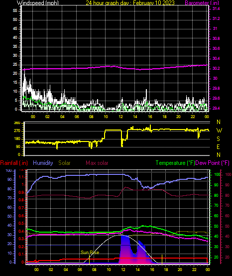 Maximum windspeed = 9.2 mph on day 01 at time 11:53