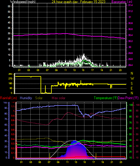 Maximum dewpoint = 34.6°F on day 01 at time 15:09