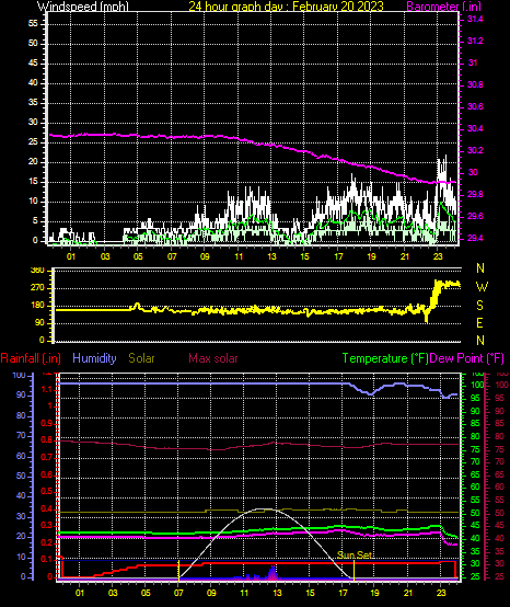 Maximum windspeed = 18.4 mph from 125°( SE) on day 03 at time 10:55