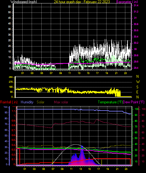 Maximum gust speed = 33.4 mph from 00°( N ) on day 23 at time 08:21