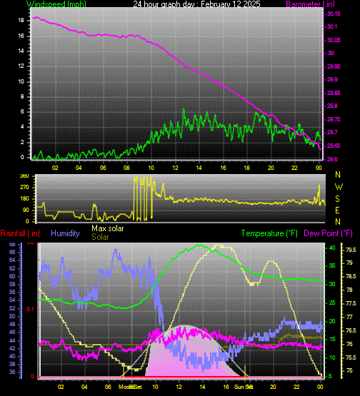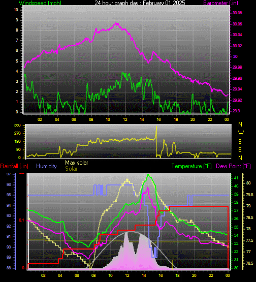 Maximum dewpoint = 39.8°F on day 01 at time 14:25