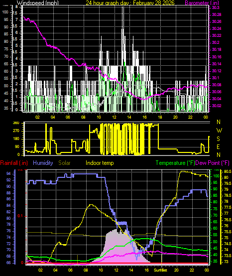 Maximum rain per minute = 0.00 in. on day 28 at time 23:57