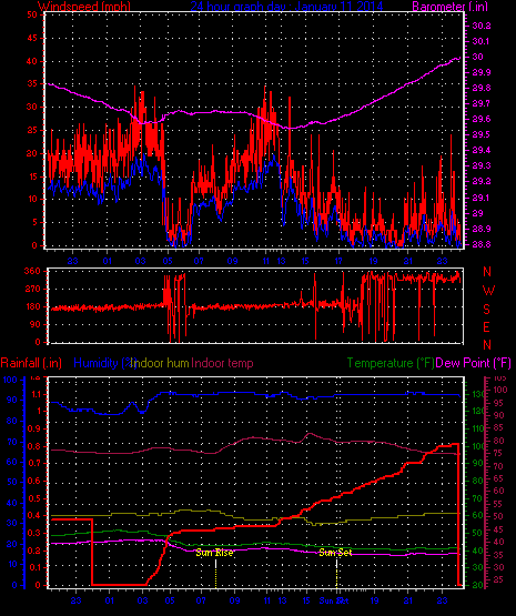Maximum windspeed = 4.6 mph on day 30 at time 23:57
