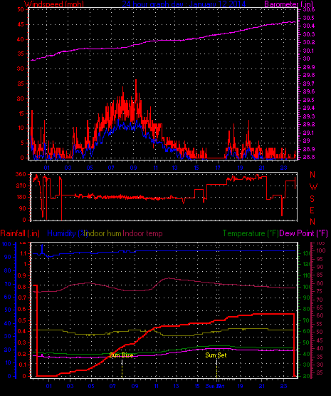 Maximum windspeed = 21.9 mph from 195°(SSW) on day 11 at time 02:57