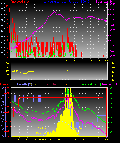 Maximum windspeed = 4.6 mph on day 01 at time 23:19