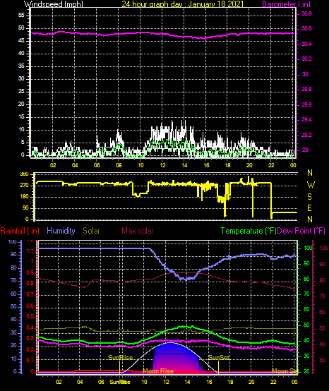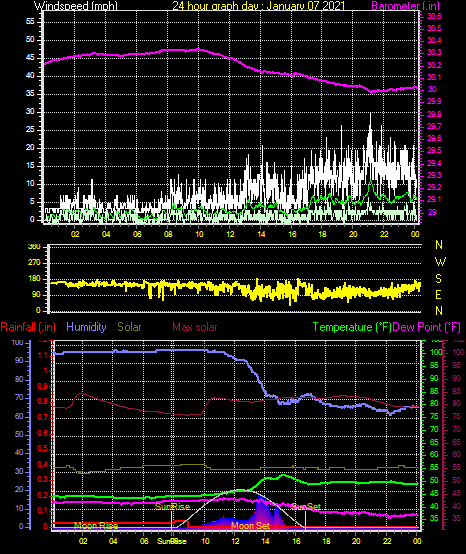 Maximum windspeed = 17.3 mph on day 04 at time 07:27