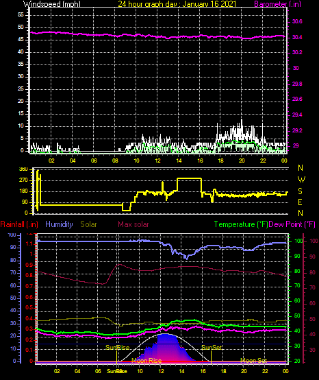 Maximum windspeed = 16.1 mph on day 02 at time 00:11