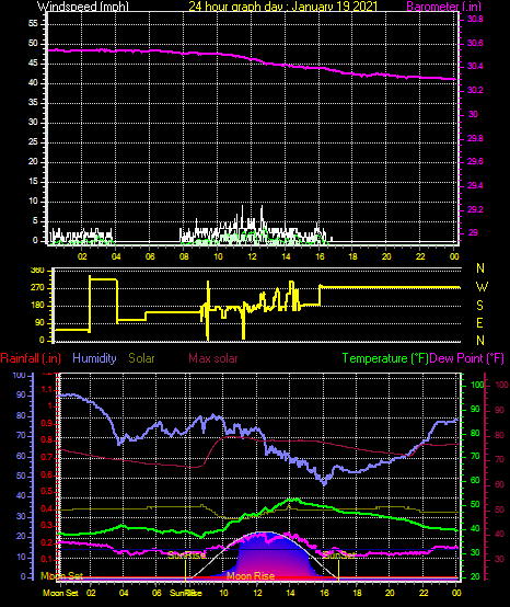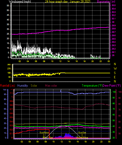 Maximum windspeed = 13.8 mph on day 01 at time 23:25