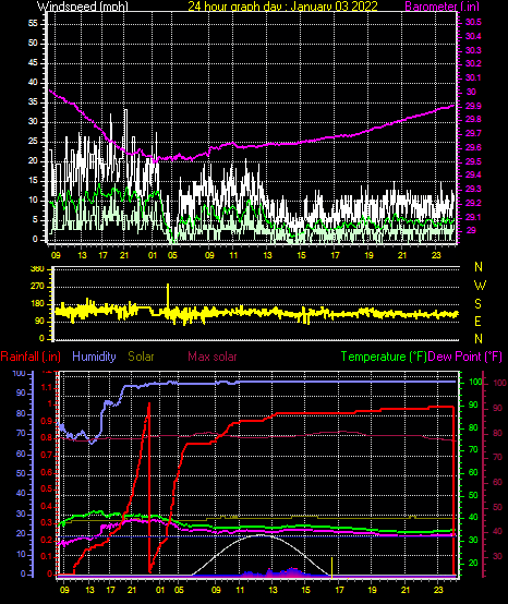 Maximum windspeed = 17.3 mph on day 03 at time 01:46