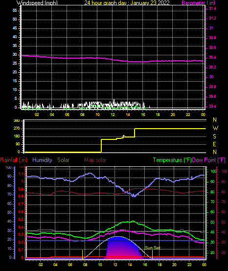 Maximum windspeed = 23.0 mph on day 02 at time 22:16