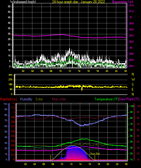 Maximum windspeed = 13.8 mph on day 30 at time 14:28