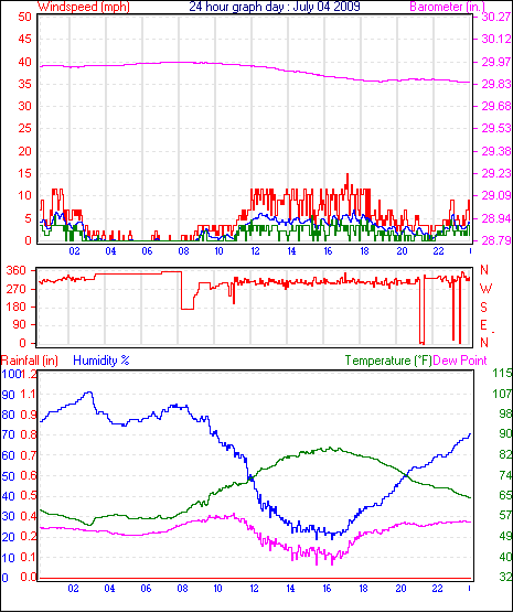 Maximum windspeed = 10.4 mph on day 03 at time 16:05