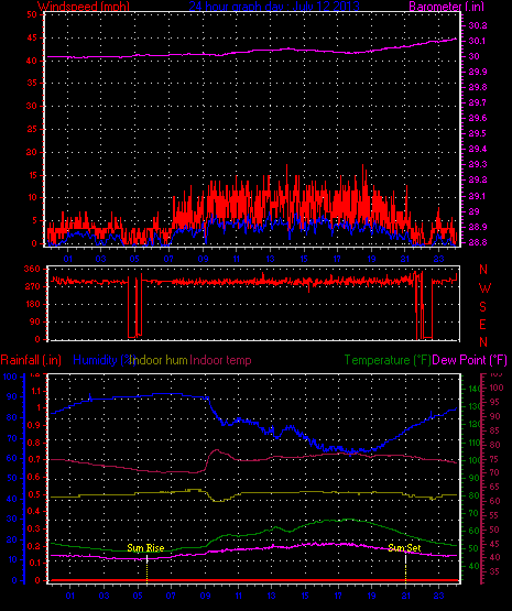 Maximum dewpoint = 69.1°F on day 01 at time 16:13