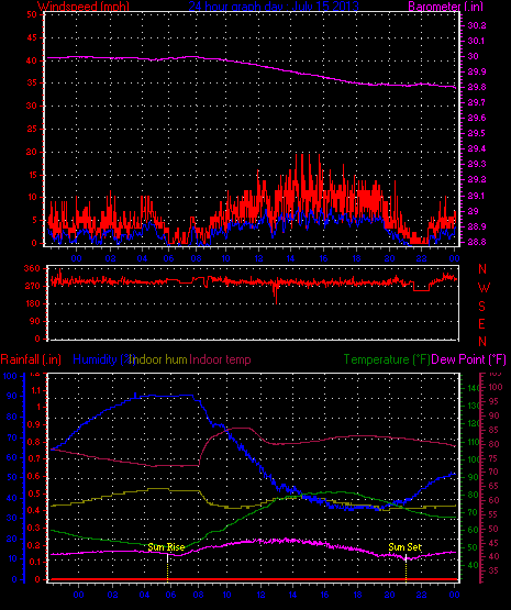 Maximum gust speed = 15.0 mph from 293 °(WNW) on day 30 at time 16:32