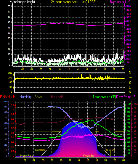 Maximum windspeed = 6.9 mph on day 04 at time 22:41
