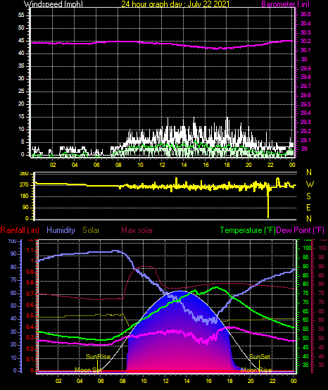 Maximum windspeed = 8.1 mph on day 30 at time 18:06