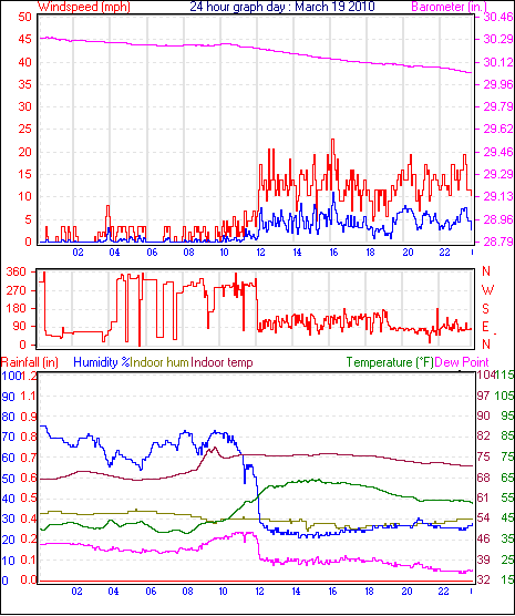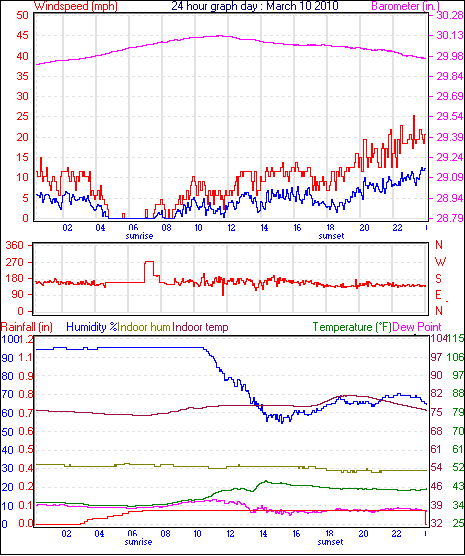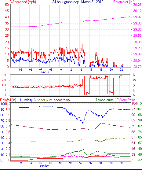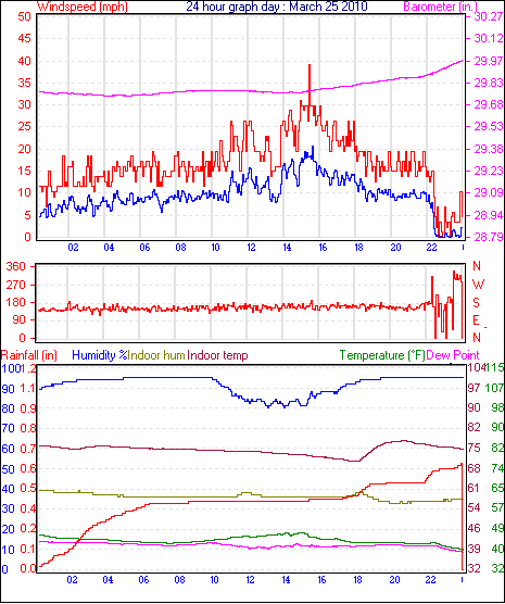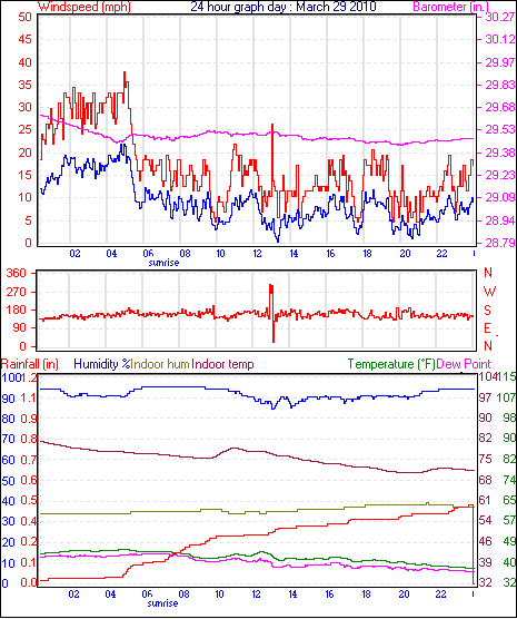 Maximum windspeed = 24.2 mph on day 29 at time 05:01