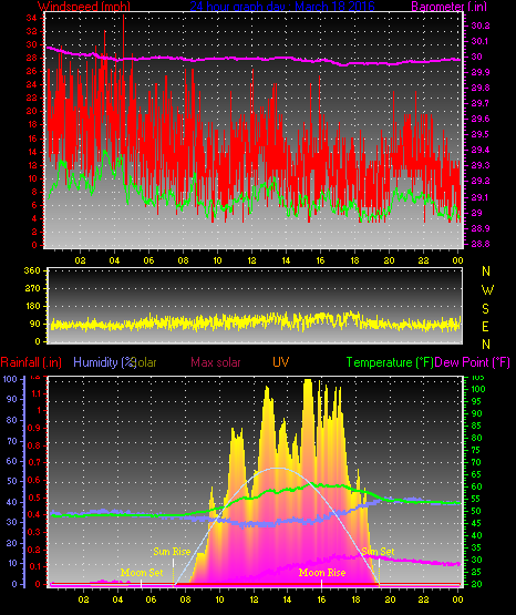 Maximum windspeed = 6.9 mph on day 30 at time 17:04