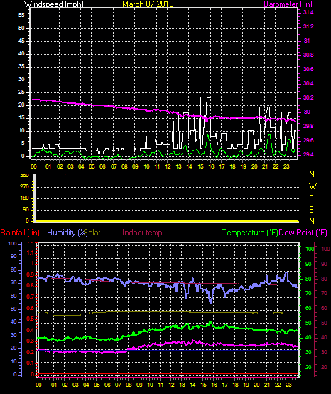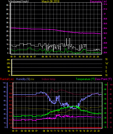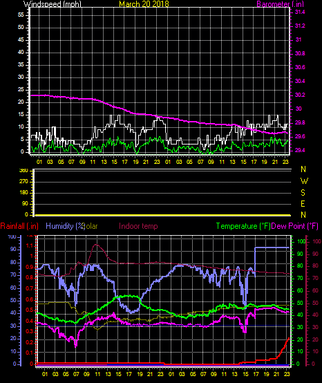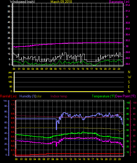 Maximum windspeed = 9.2 mph on day 30 at time 05:07