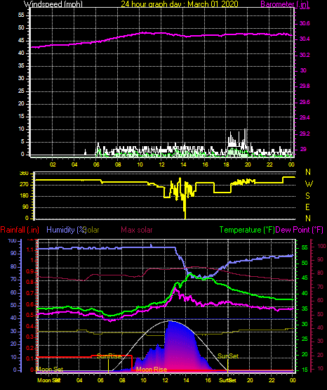 Maximum dewpoint = 43.3°F on day 04 at time 00:03