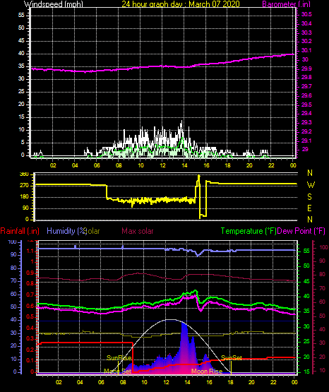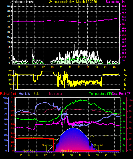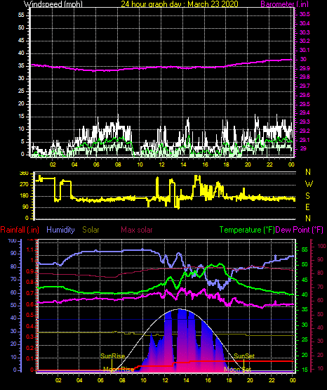 Maximum windspeed = 19.6 mph on day 30 at time 03:30