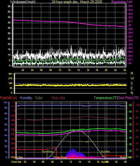 Maximum windspeed = 19.6 mph from 162°(SSE) on day 30 at time 03:30